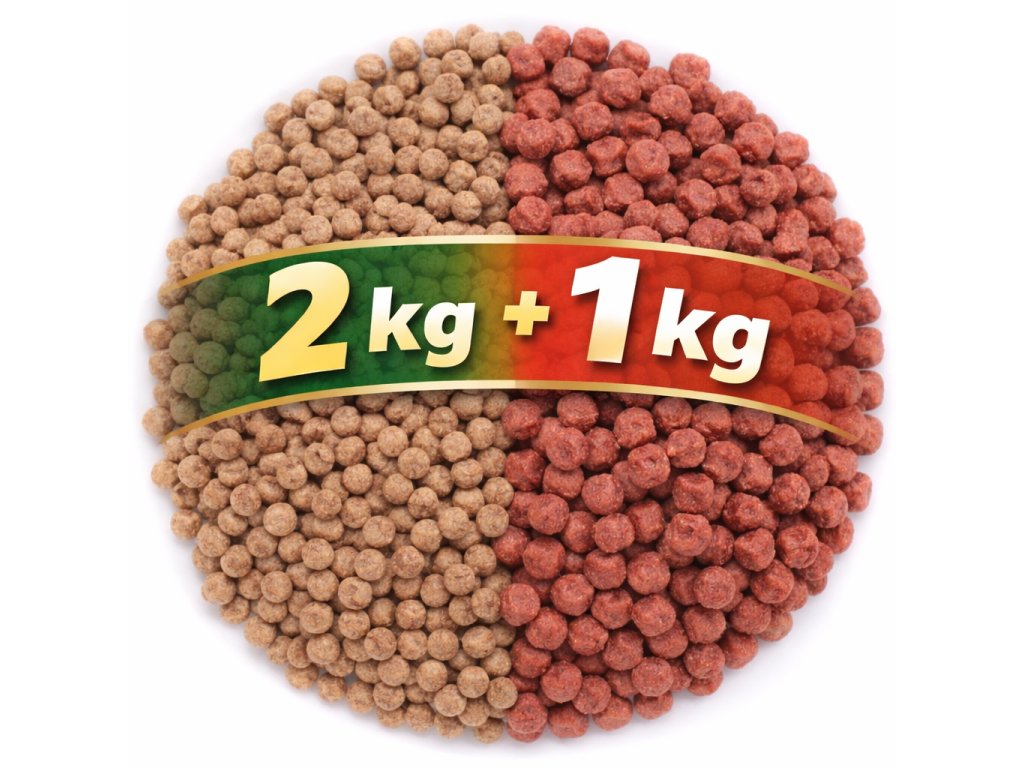 Tento kombi balík je postavený na praktickom pomere krmív, ktorý zodpovedá reálnemu používaniu v chove: